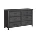 Complement your child's bedroom with the modern sophistication of the Hampton Kids 6-Drawer Dresser in Charcoal. Designed with durability in mind, this dresser's frame is built with solid wood and finished with a quality, grained oak veneer. Drawers with skillful dovetailing and ball bearing glides are outfitted with sleek and discreet metal pulls, while the top drawers are fashioned with protective felt lining. For those seeking quality, style, and practicality, the Hampton Kids 6-Drawer Dresser in Charcoal is the clear choice. Features: • Solid Wood Frame with Grained Oak Veneer • Drawers with Skillful Dovetailing & Ball Bearing Glides • Felt-Lined Top Drawers • Anti-Tip Kit Enhances Safety • Hygienic Dust-Proofing Underside • 56"W x 18"D x 36"H • Due to Lighting, Product color May Vary Slightly from Images Dimensions: Depth: 18.0" x Width: 56.0" x Height: 36.0" Weight: 150.0 lbs.
