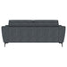 Indulge in effortless style and comfort with this chic transitional sofa. Soft charcoal upholstery gracefully harmonizes with any décor, while plush pocket coil seat cushions and modern track arms provide inviting support for your downtime. Designed with attached cushions for a neat appearance and innovative metal legs that allow for easy assembly, this collection elevates the overall ambiance of your living space.