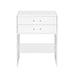 Introducing the Irvine Dressing Table with Stool "” a perfect due with modern functionality. Its glossy finish adds a touch of elegance, while the touch LED light ensures optimal lighting for your beauty routines. Equipped with USB A & C ports, it keeps your devices charged and ready. The store away stool offers convenient seating and space-saving design. The top drawer, lined with black felt, protects your valuables, and the tempered glass shelf top provides a sleek, durable surface. Ideal for small spaces, this compact vanity is the ultimate addition to your bedroom or dressing area. Features: • Glossy White Finish Radiates Modern Elegance • LED Light Illuminates Beauty Rituals with a Gentle Touch • USB A & C Allows Effortless Charging • Store Away Stool Cleverly Designed for Space-Saving Convenience • Safely Store Essentials with Black Felt in Top Drawer • Tempered Glass Shelf Top Adds Durability and Sleek Touch • Compact Design Perfect for Small Spaces • 24"W x 16"D x 32"H • Due to Lighting, Product Color May Slightly Vary From Images Dimensions: Depth: 16.0" x Width: 24.0" x Height: 32.0" Weight: 87.0 lbs.